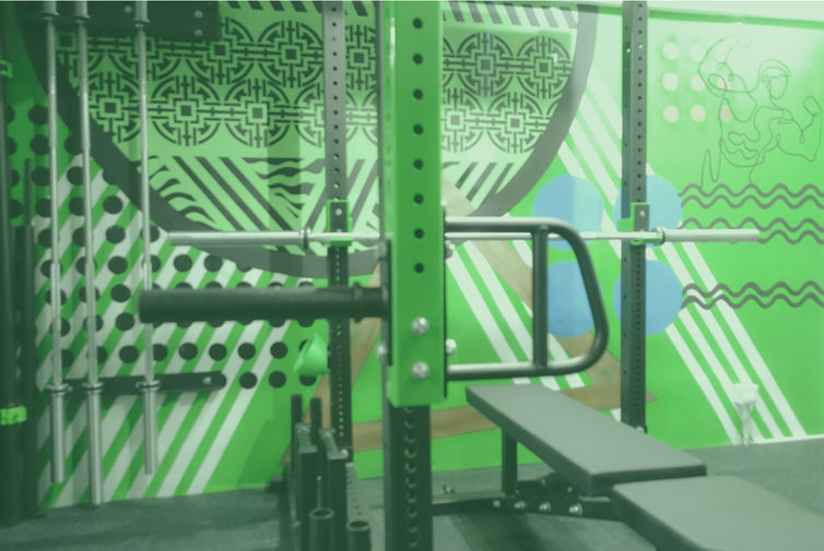 I established themes of camaraderie, community based fitness and growth, and then selected an impactful correlating colour. The colour green symbolises health, abundance, and calm creating a positive environment for an invigorating experience. Next I chose bold lines and abstract artwork to represent the fusion of personal power and motivation with a nod to the vivid patterns of local Cantonese street artists. The ‘Strong Hearts’ slogan taking form throughout the feature wall design, and carrying through to sub-logos on merchandise and marketing materials. The logo itself, an icon of strength and a recognisable, adaptable brand signifier.